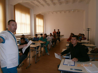 Singurul stagiu din spital,de la chirurgie maxilo-faciala, cand ne-a lasat pe saloane, si noi ne-am intins la talcioc :)) puteti observa pacienta pe scaun, si eu care tineam un discurs care pare foarte interesant. Sa va mai spun ca ne-a prins dl doctor?Si ca unii dintre noi ne-am ales cu o absenta?